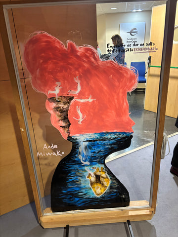 Para el evento Entorno Trampolín creé la obra Emprendimiento, un mural que refleja ese salto de fe que todo emprendedor da al pasar de la cabeza al corazón. En este viaje, es fundamental navegar con cuidado para no perderse en las aguas de la incertidumbre.
